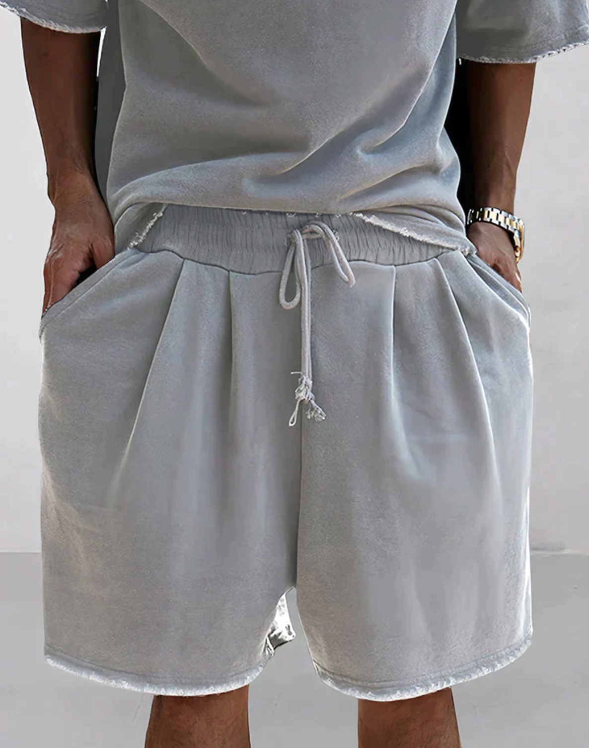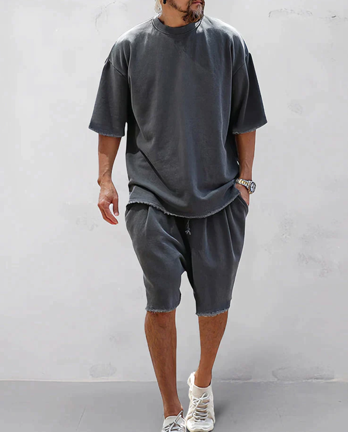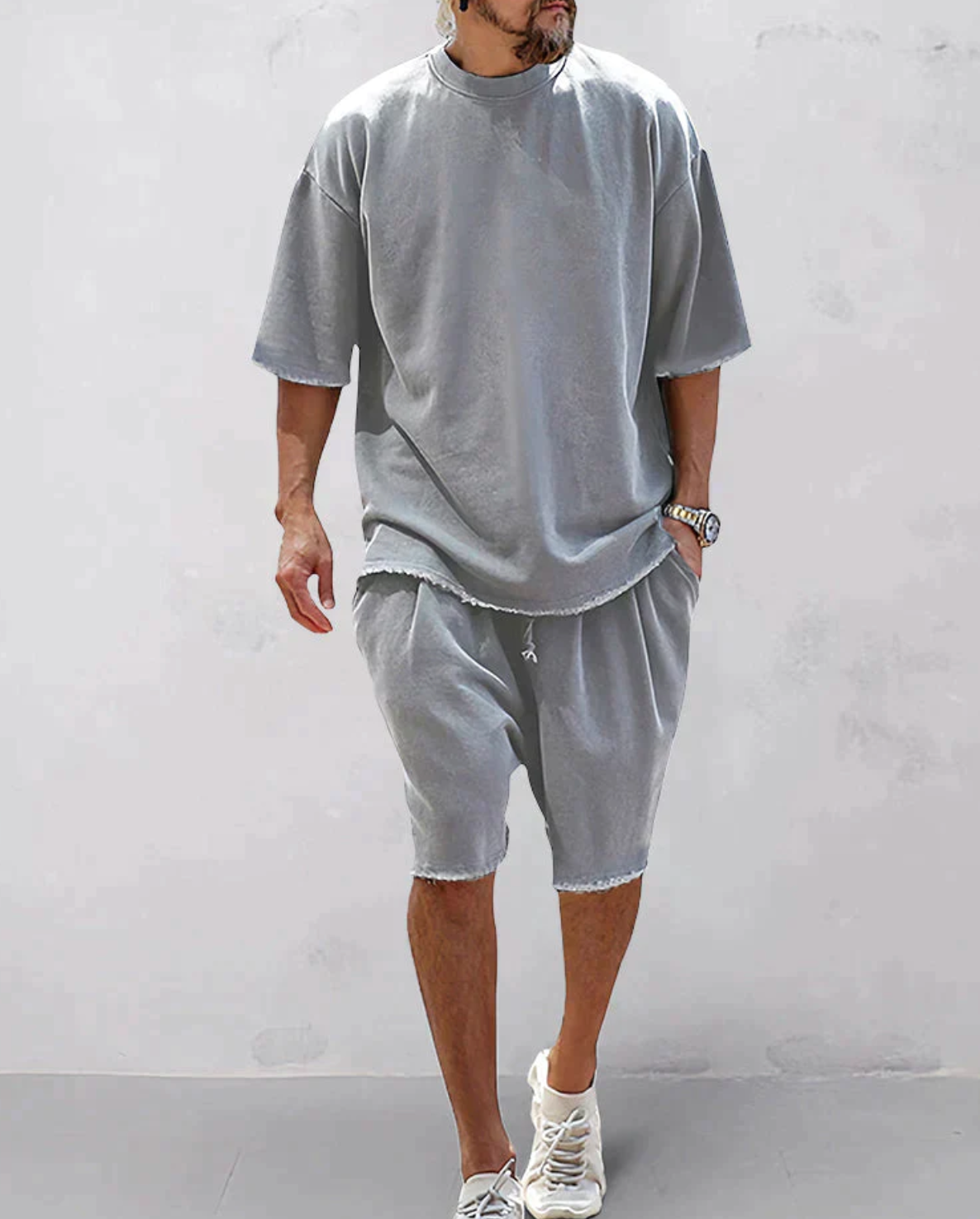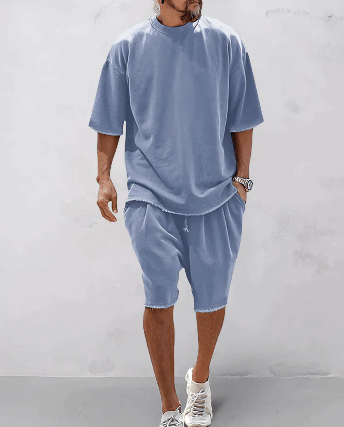 Dieses Sommerset für Männer aus Baumwolle ist perfekt für warme Tage. Es besteht aus einem bequemen T-Shirt und modischen Shorts. Aus hochwertiger Baumwolle gefertigt, ist das Set leicht und atmungsaktiv und hält Sie den ganzen Sommer über kühl und modisch.