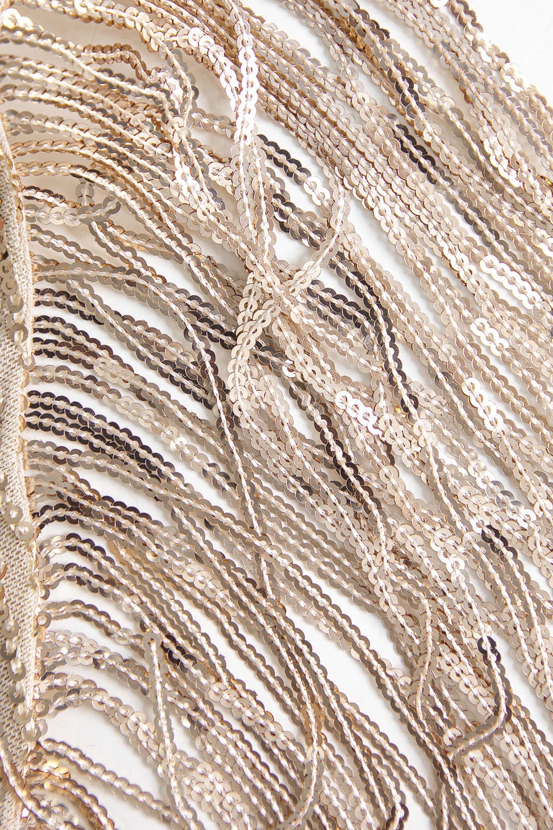 Sienna | Goldenes Abendkleid mit schimmernden Pailletten & asymmetrischem Fransen-Design