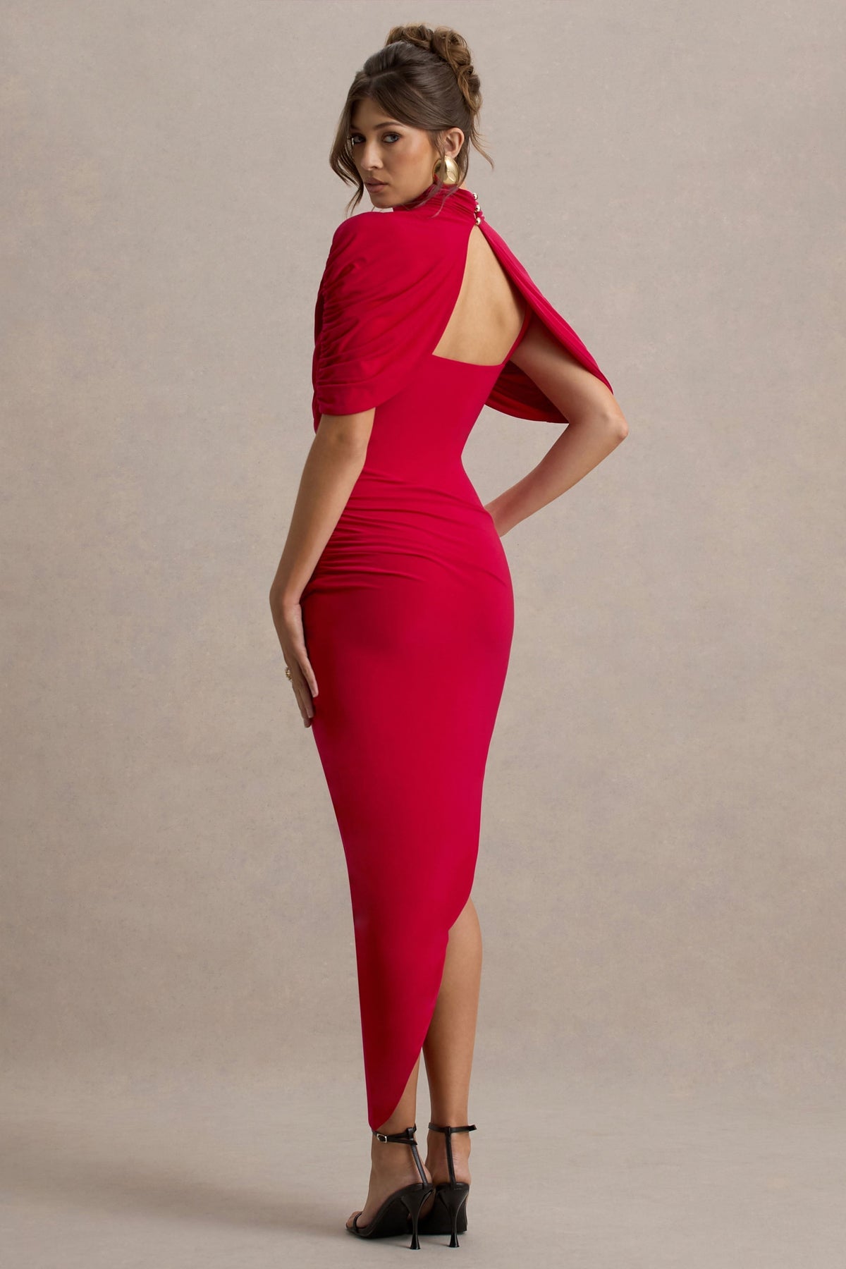 Erleben Sie Raffinesse und Glamour mit unserem Taylor Maxi. Aus hochwertigem Stretch-Jersey in kräftigem Rot schmeichelt dieses Kleid Ihrer Figur aus jedem Blickwinkel. Der hohe Ausschnitt und die eleganten Cape-Ärmel machen es zum idealen Kleidungsstück für besondere Anlässe.
