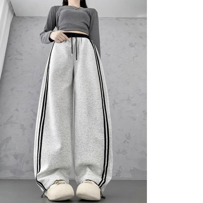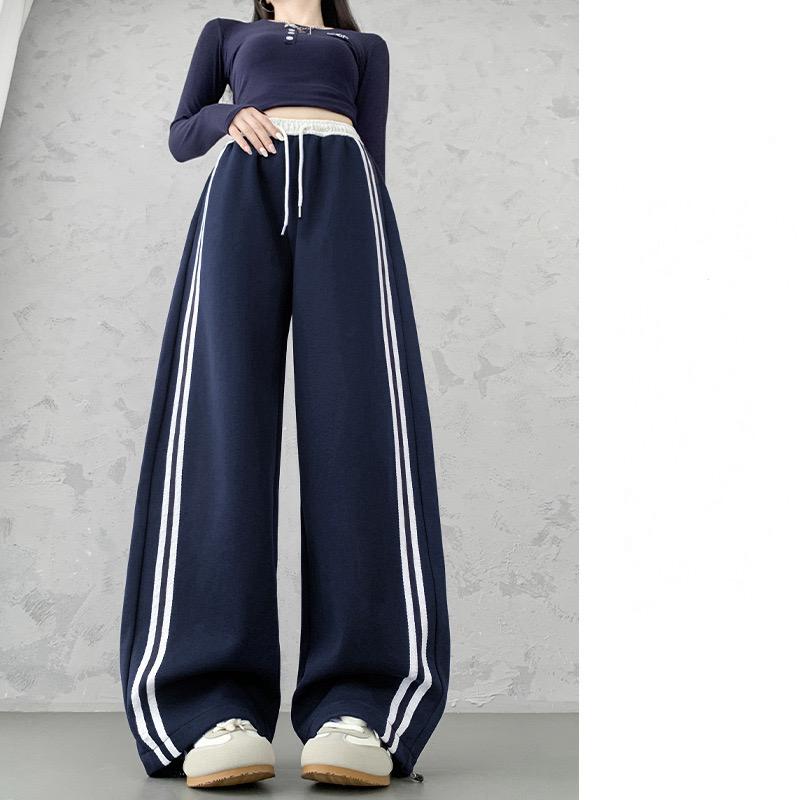 Diese weit geschnittene jogginghose kombiniert sportlichen stil mit maximalem tragekomfort. das weiche, atmungsaktive material und der elastische bund mit kordelzug sorgen für eine perfekte passform, während die seitlichen kontraststreifen für einen modernen, verlängerten look sorgen. ideal für entspannte tage, workouts oder streetstyle-outfits.