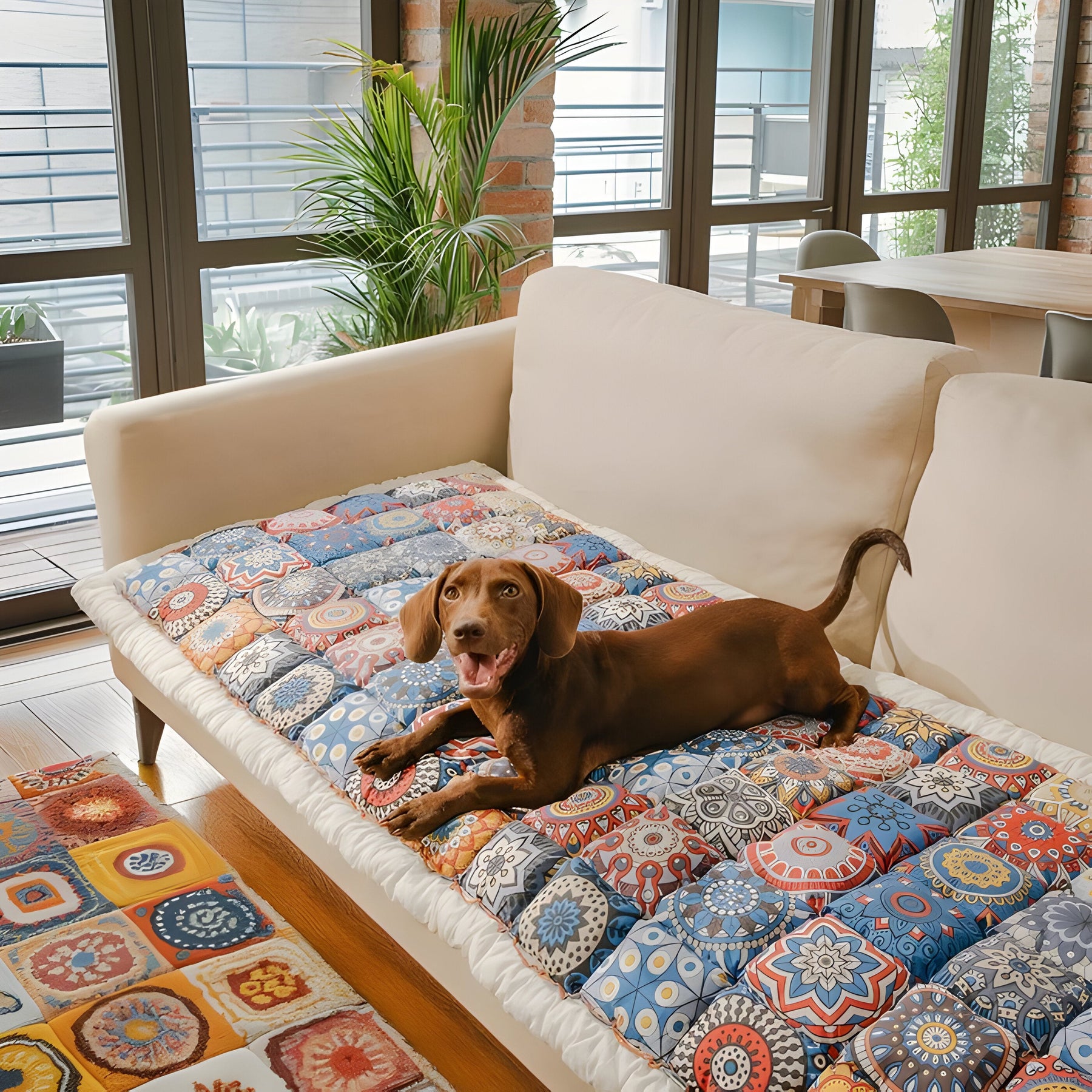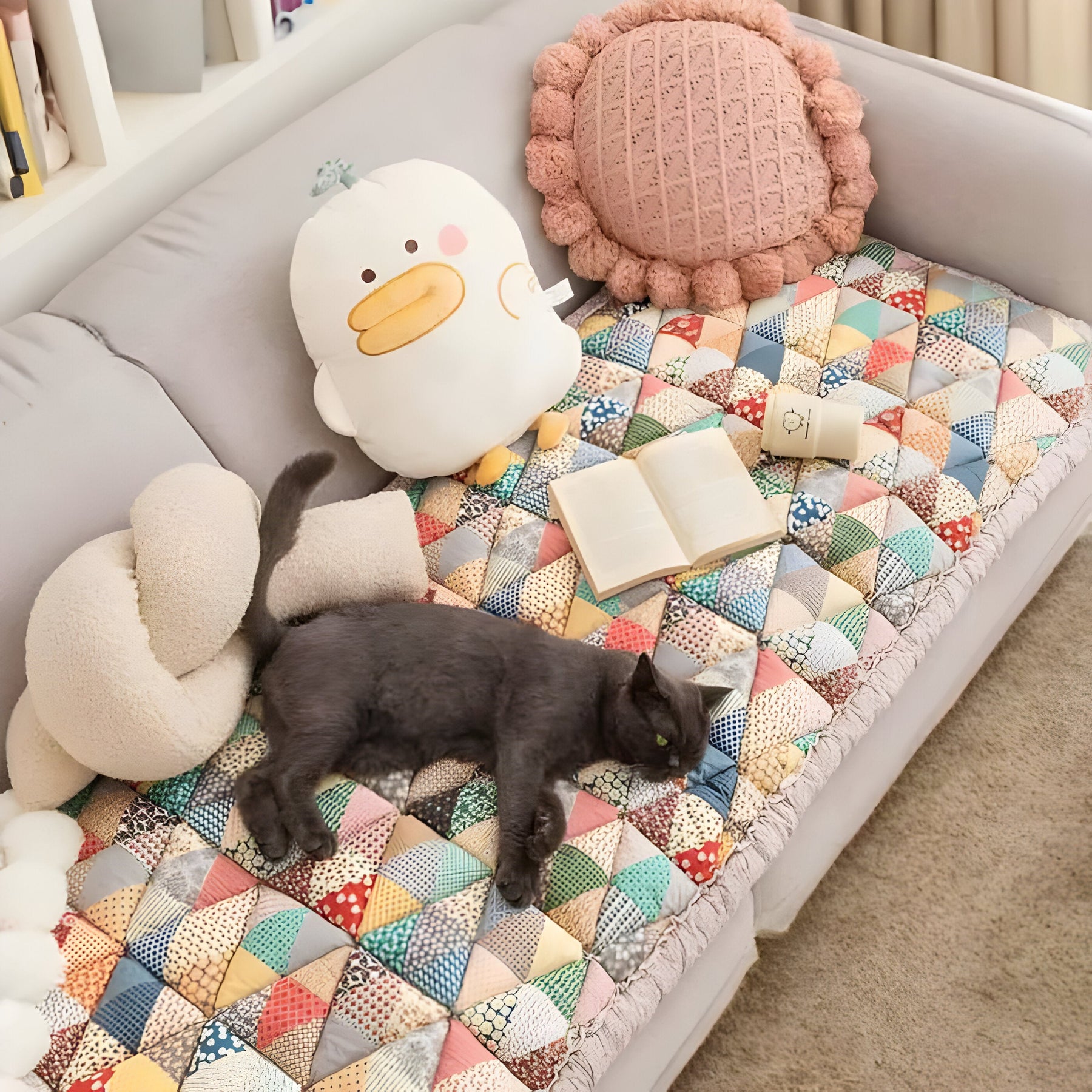 Dank der speziellen Struktur bleibt das VelvaLoom Cover sicher an Ort und Stelle, selbst bei aktiven Haustieren und spielenden Kindern.