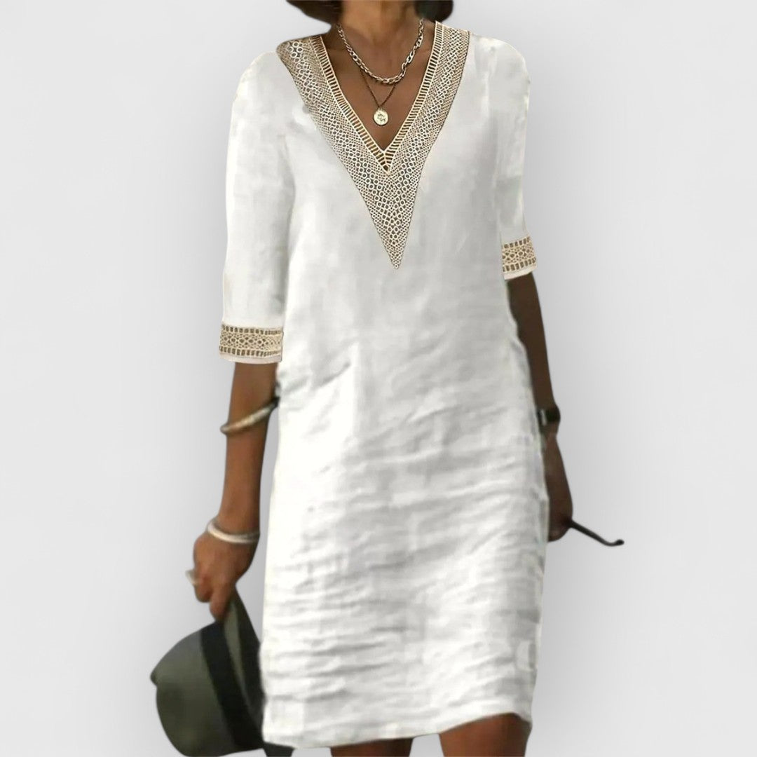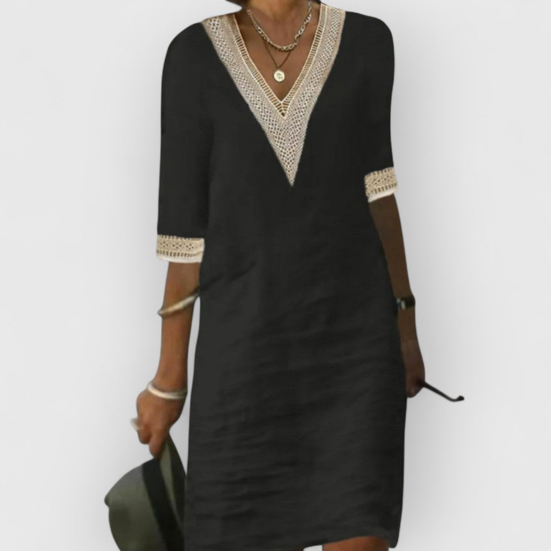 - Chic Design - Mit einem schmeichelhaften V-Ausschnitt und zarter Spitzenverzierung kombiniert dieses Kleid trendige Details mit zeitlosem Stil für einen Look, der immer beeindruckt.