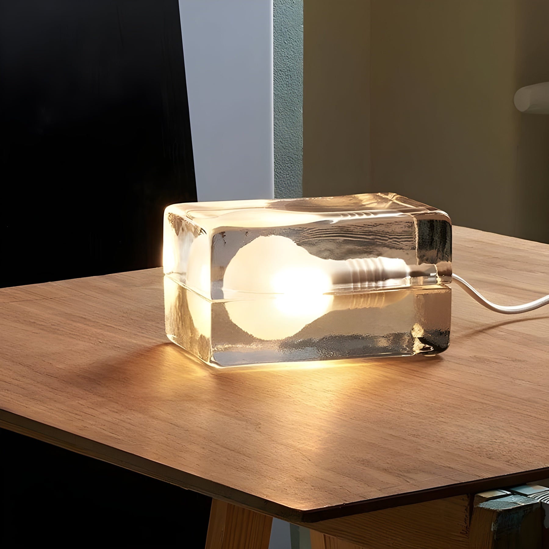 ZenCube Lamp – Moderne transparente Eistischlampe mit Würfel-Glühbirne