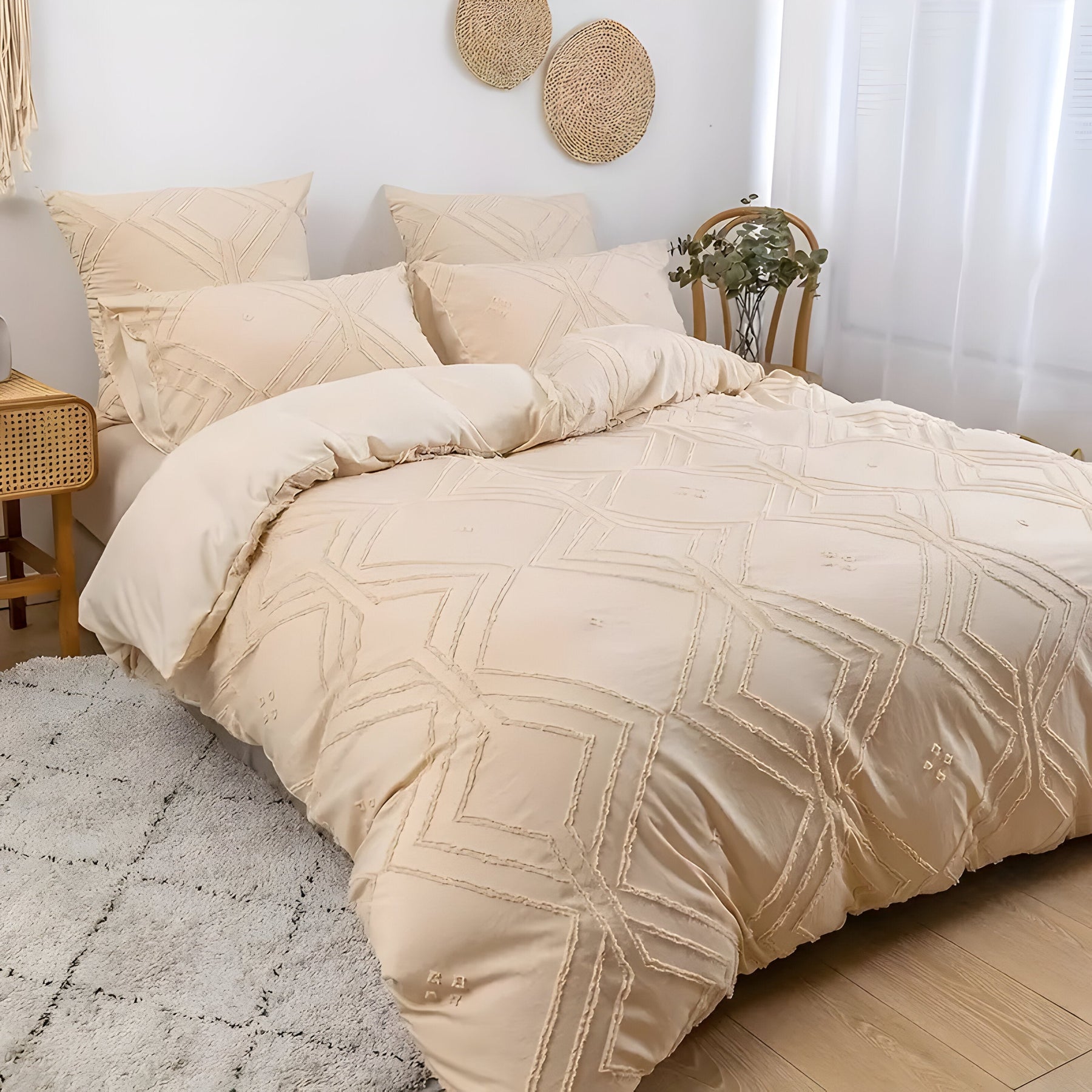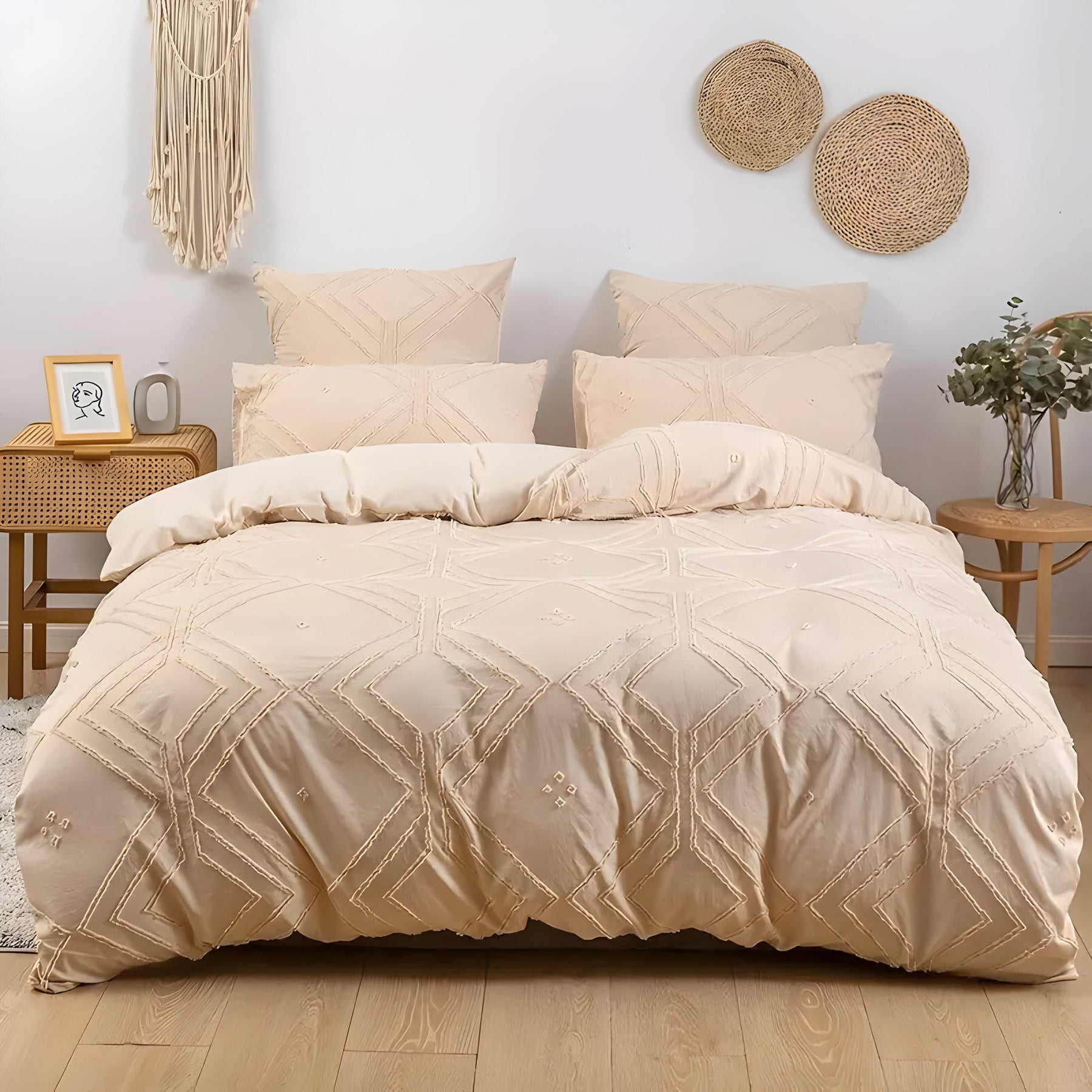 ZippWeave Bettwäsche-Set – Geometrisches Boho Tufted Duvet Bezug Set
