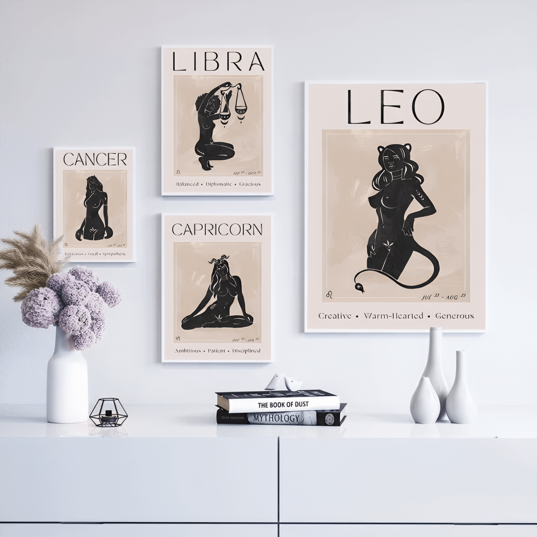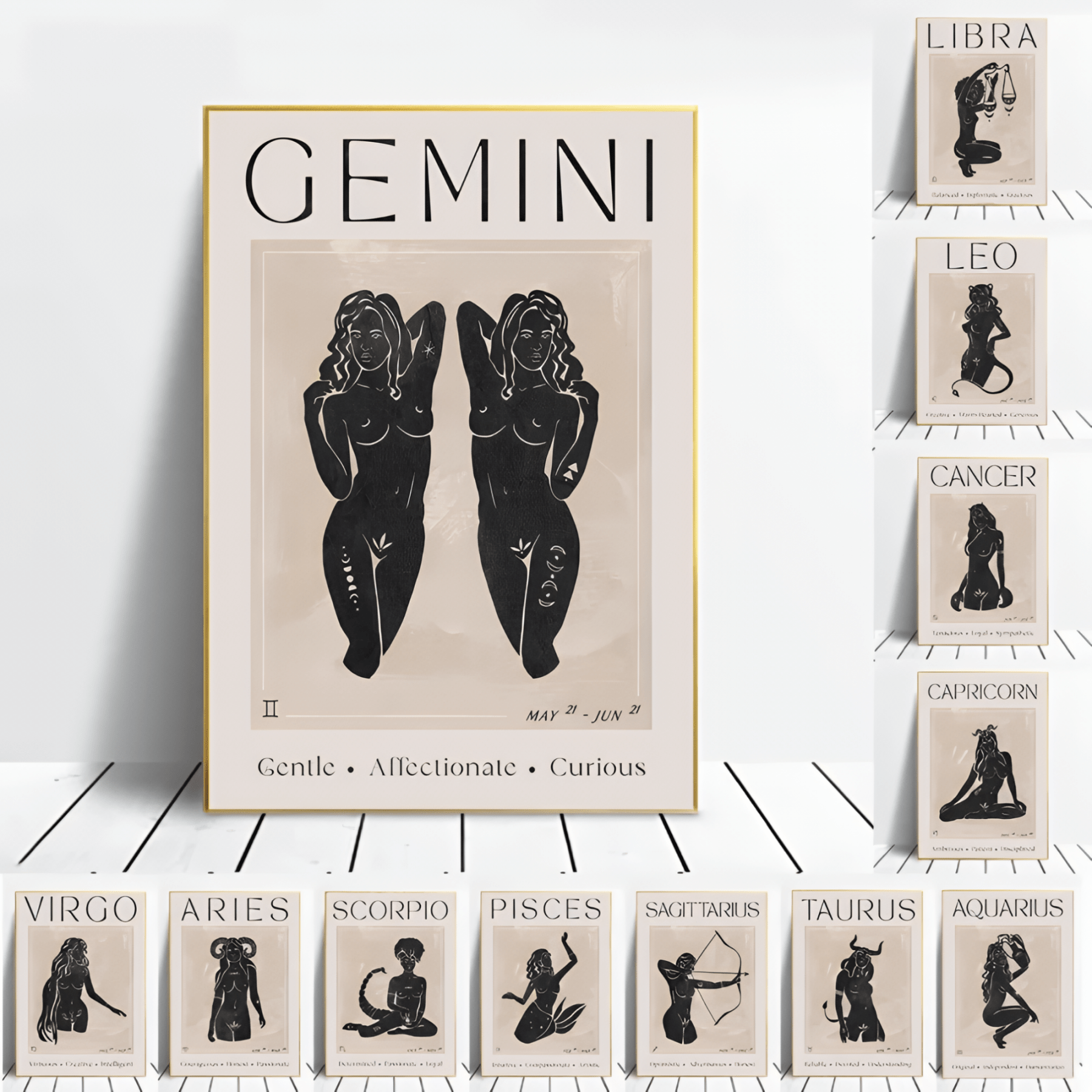 Zeenova Hinweis: Diese Drucke sind nicht nur Kunst – sie sind Erlaubnisscheine. Erlaubnis, deine Widersprüche zu besitzen, über deine Fehler zu lachen und dein Tierkreiszeichen wie die Auszeichnung zu hängen, die es ist.